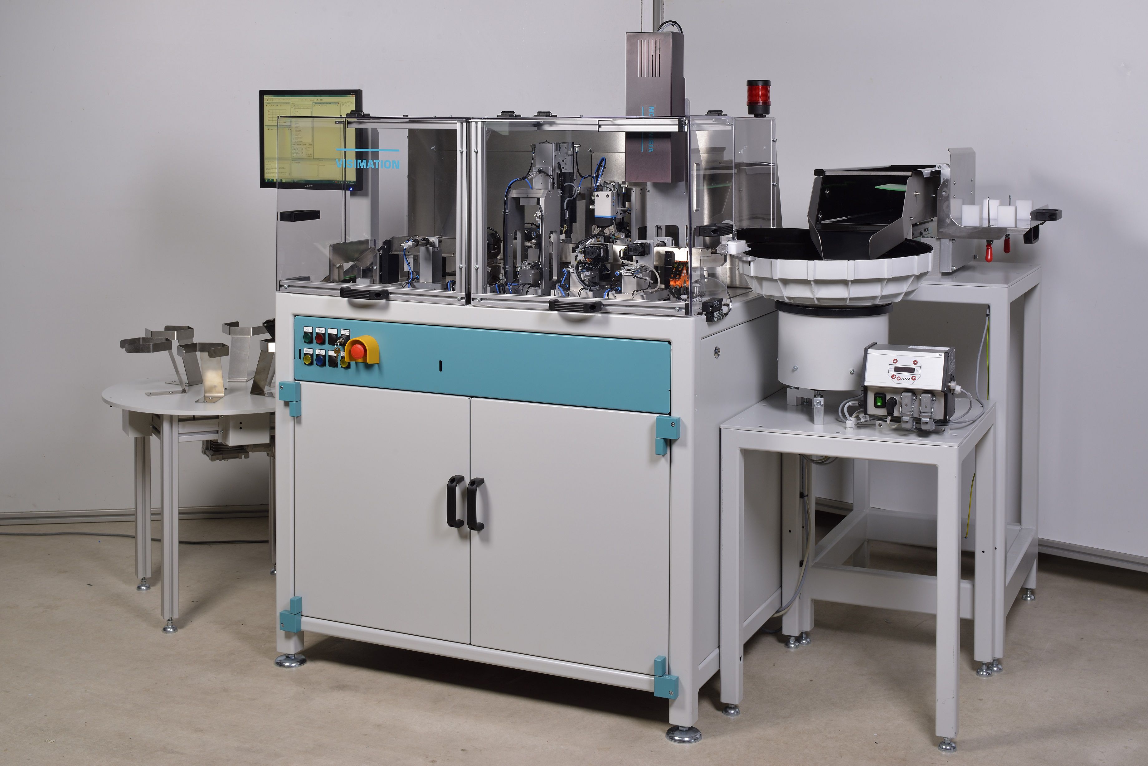 • Teileabführung über Drehteller mit 5-20 Kisten
